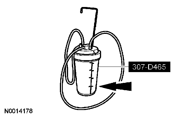 14. Inspect the fluid level in the special tool. If the fluid drains back into the canister, the transmission is full. If no fluid drains back, more fluid will need to be added. Repeat Steps 12 and 13.