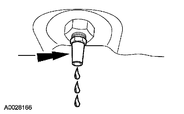 16. Allow the fluid to drain. Make sure that the fluid temperature is between 27°C - 49°C (80°F - 120°F). When the fluid comes out as a thin stream or drip, the fluid is at the correct level.