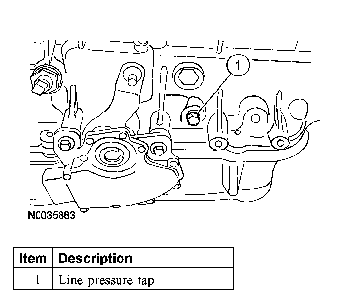 NOTE: The line pressure tap is used to verify output pressure from PC A or PC B by turning either one OFF while verifying the output from the other solenoid. The second pressure tap is used to verify the output from the PC C solenoid.