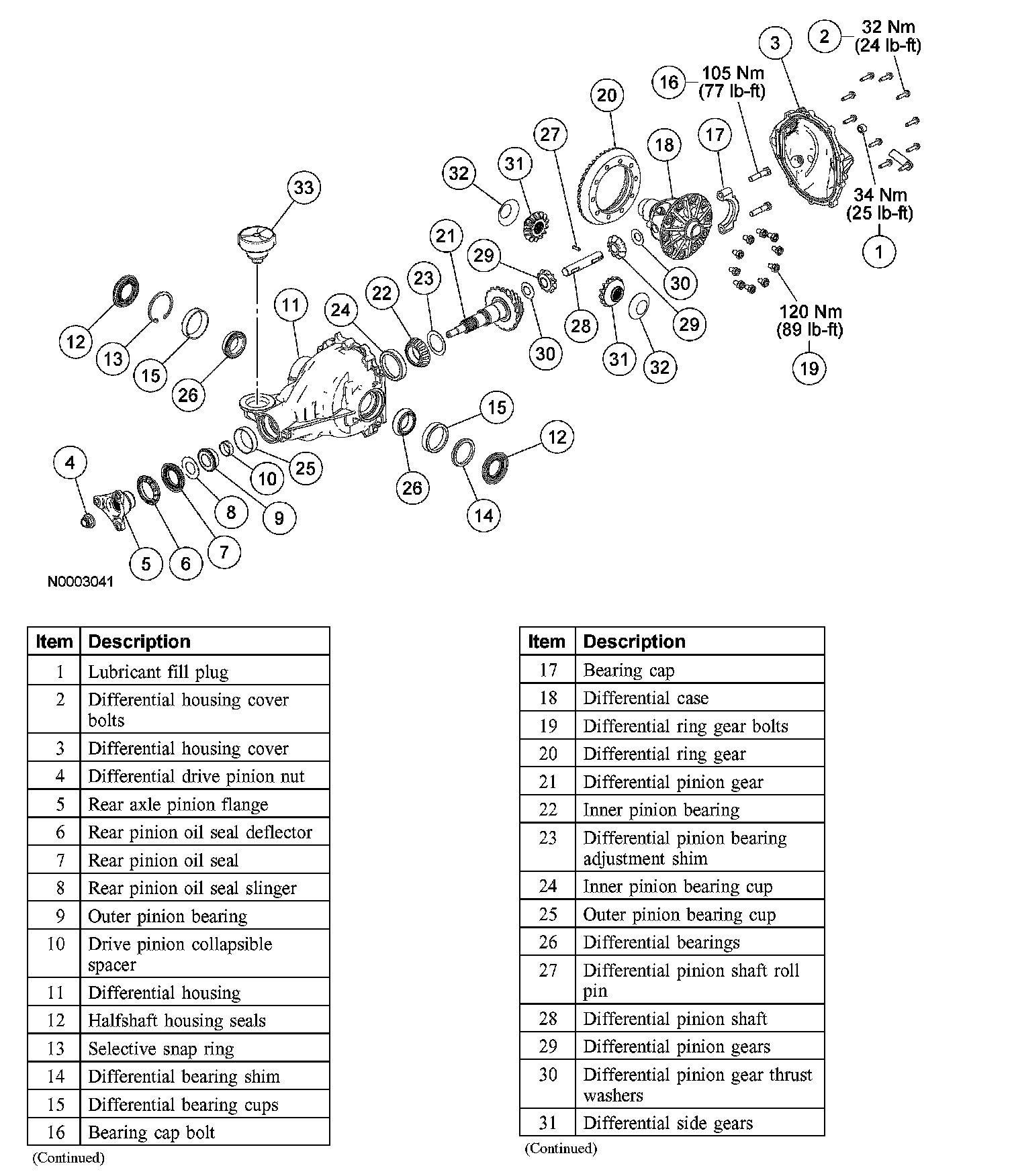 19. CAUTION: Do not, under any circumstance, loosen the differential drive pinion nut to reduce differential pinion bearing preload. If it is necessary to reduce differential pinion bearing preload, install a new drive pinion collapsible spacer and differential drive pinion nut.