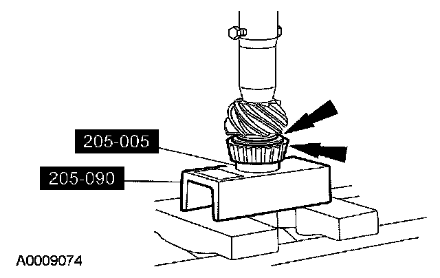 12. Using the special tools and a suitable press, firmly seat the differential pinion bearing adjustment shim and inner pinion bearing on the differential pinion stem.