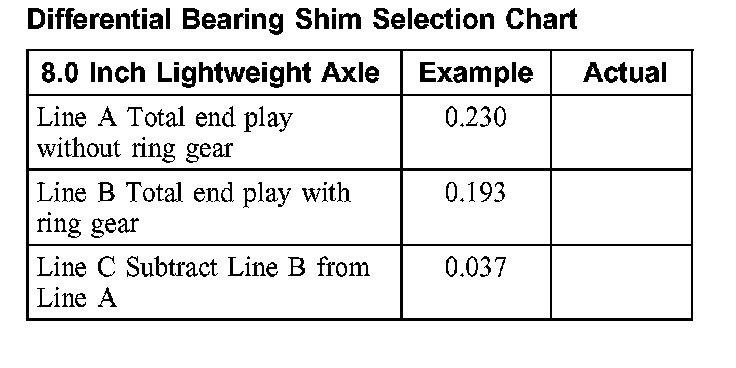 ^ Record the reading on the differential bearing shim selection procedure Line B.