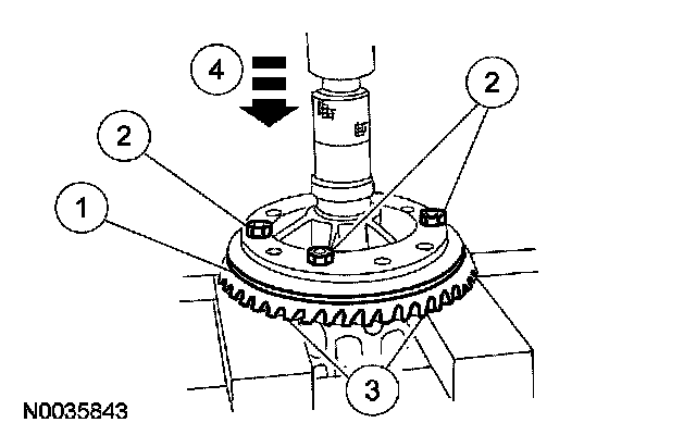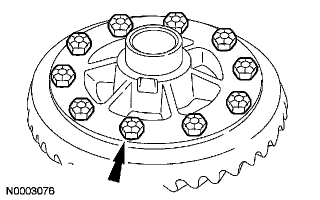 32. Remove the differential ring gear bolts. Apply Stud and Bearing Mount to the differential ring gear bolt threads, and reinstall the differential ring gear bolts.