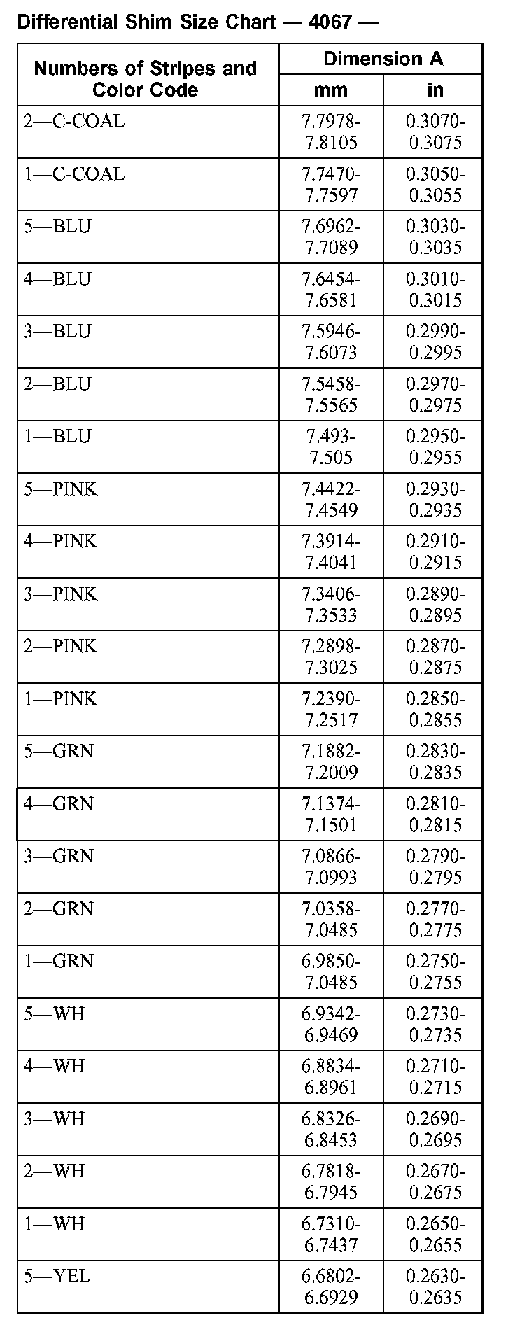 Differential Shim Size Chart - 4067 - (Part 2):