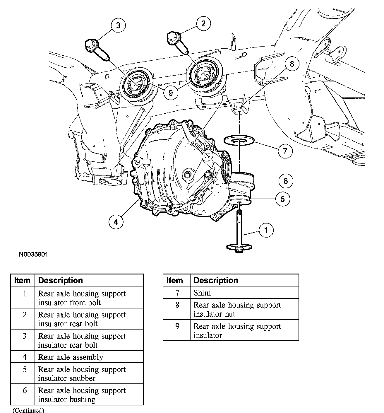 6. Remove the front rear axle housing support insulator bolt.