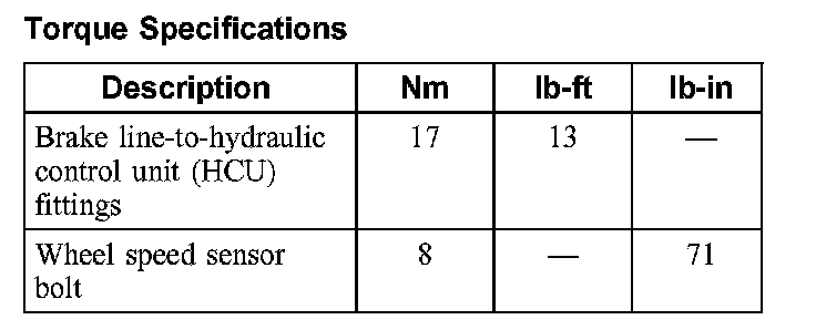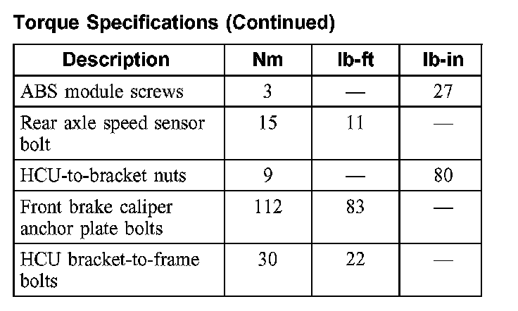 Torque Specifications: