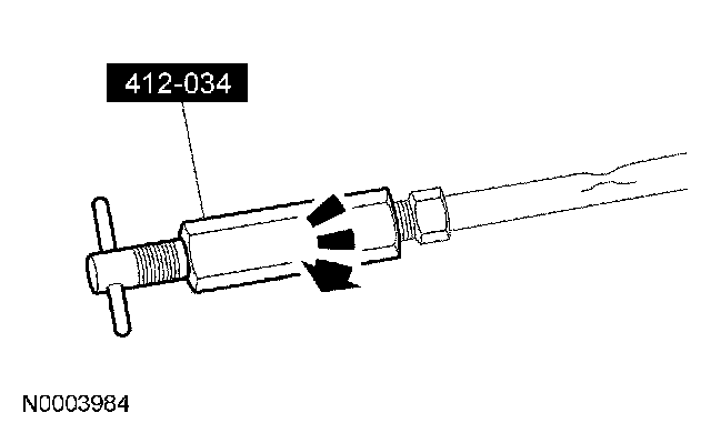 4. If the evaporator core orifice is intact, engage the special tool. Hold the T-handle stationary while rotating the tool body to remove the evaporator core orifice.