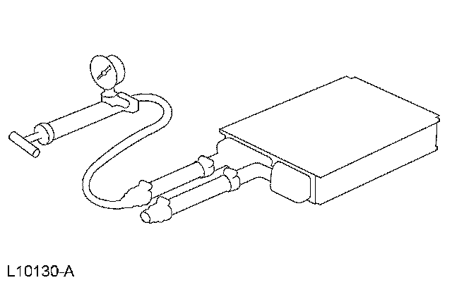 8. If the pressure drops, check the heater water hose connections to the core tubes for leaks. If the heater water hoses do not leak, remove the heater core from the vehicle and carry out the bench test.
