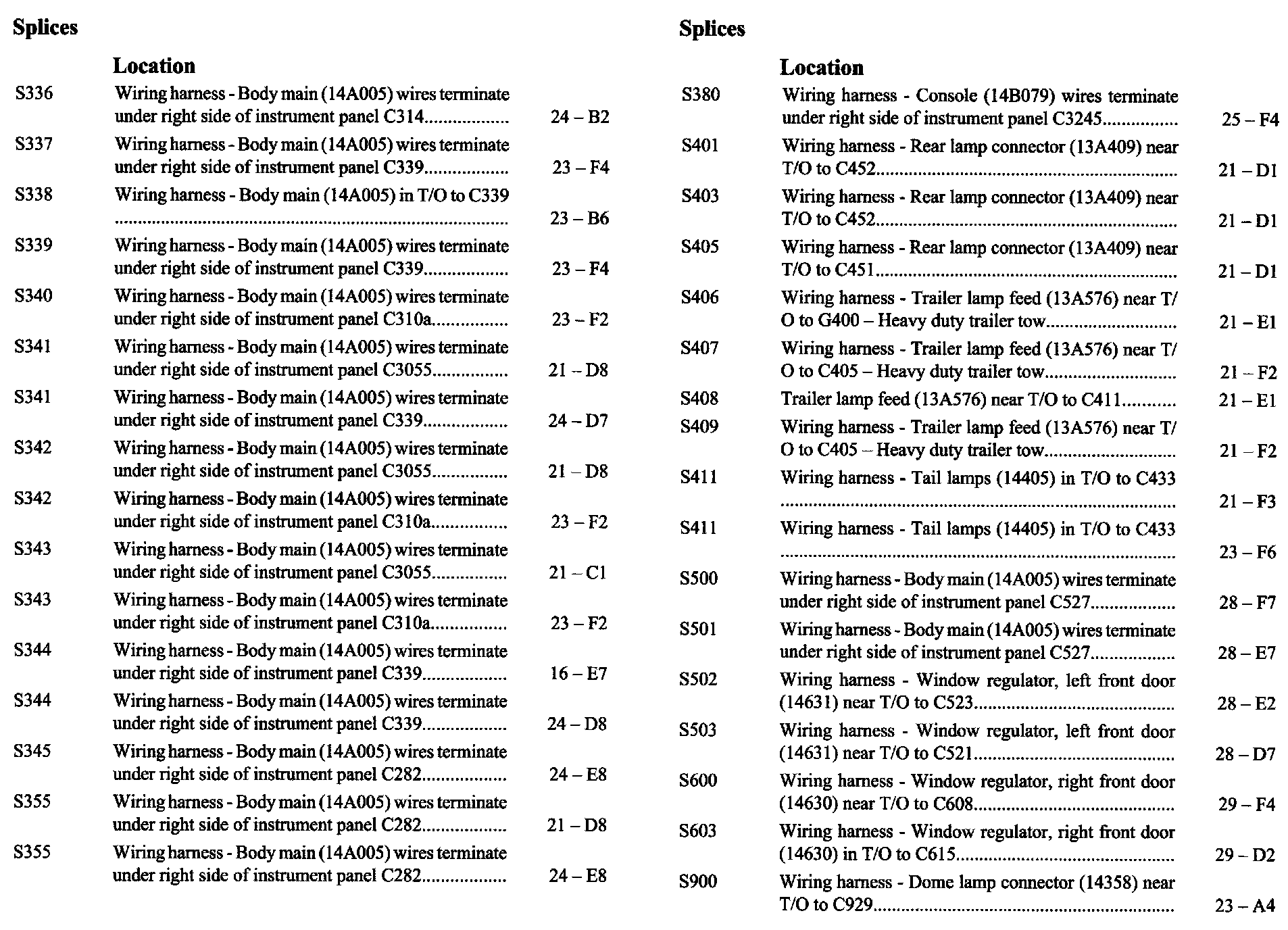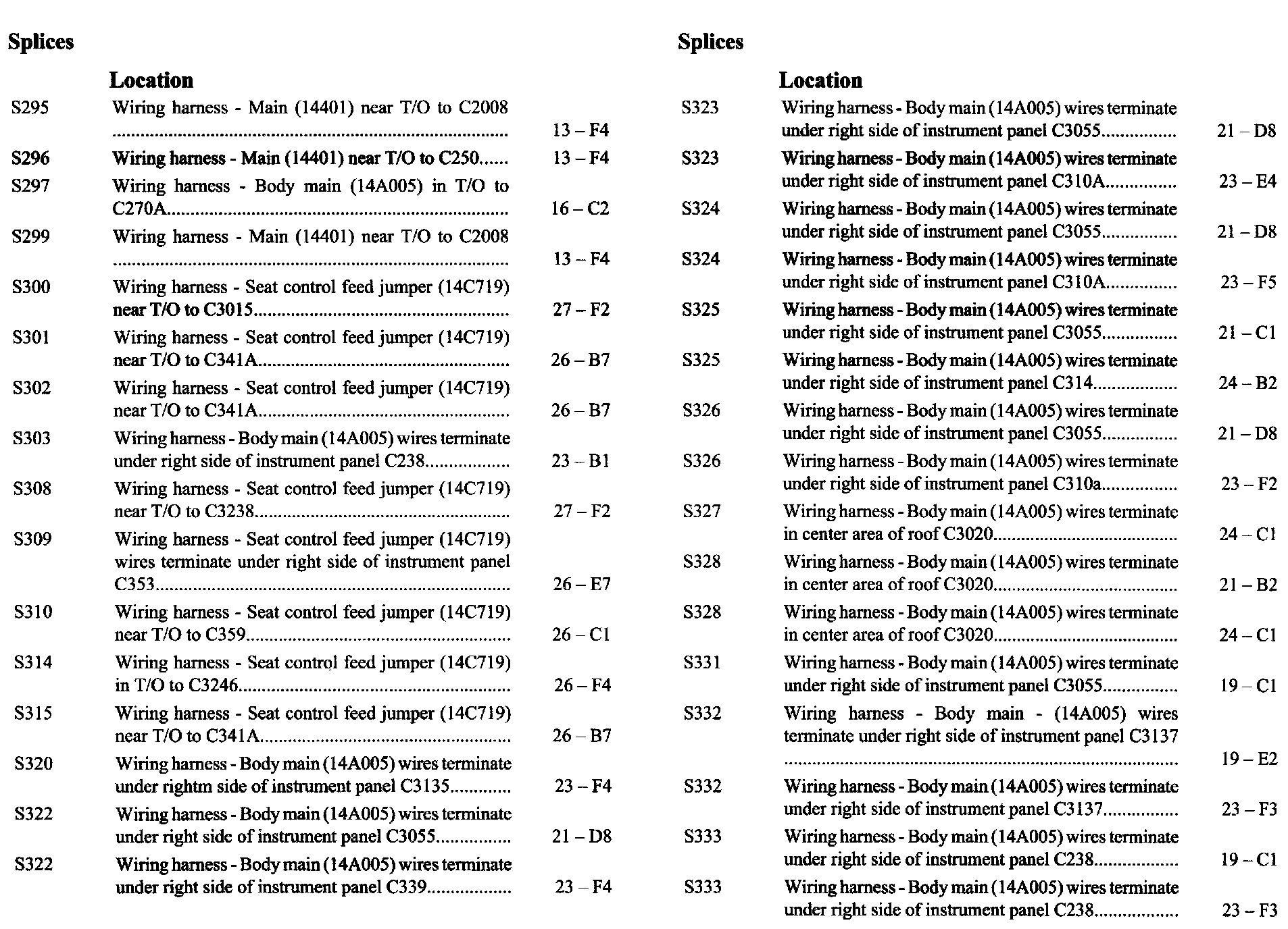 PLEASE NOTE: If a link on the Splices Location Index to a View is not provided, that means that the Splices and/or View in question does NOT apply to the vehicle model selected.