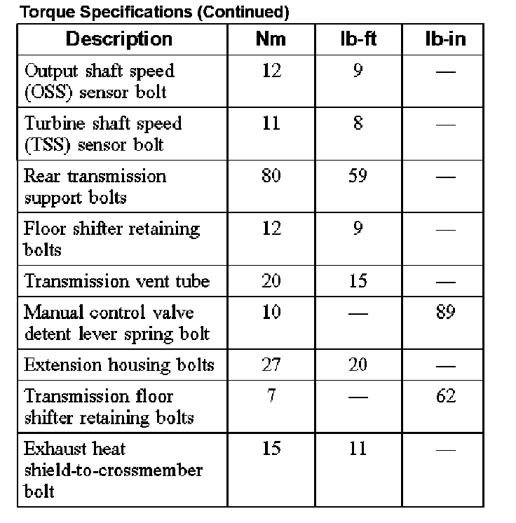 Torque Specifications (Part 2):