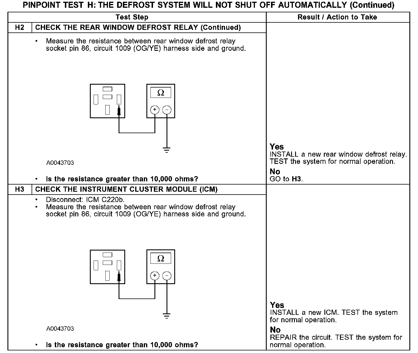 PINPOINT TEST H: THE DEFROST SYSTEM WILL NOT SHUT OFF AUTOMATICALLYH1-H2: