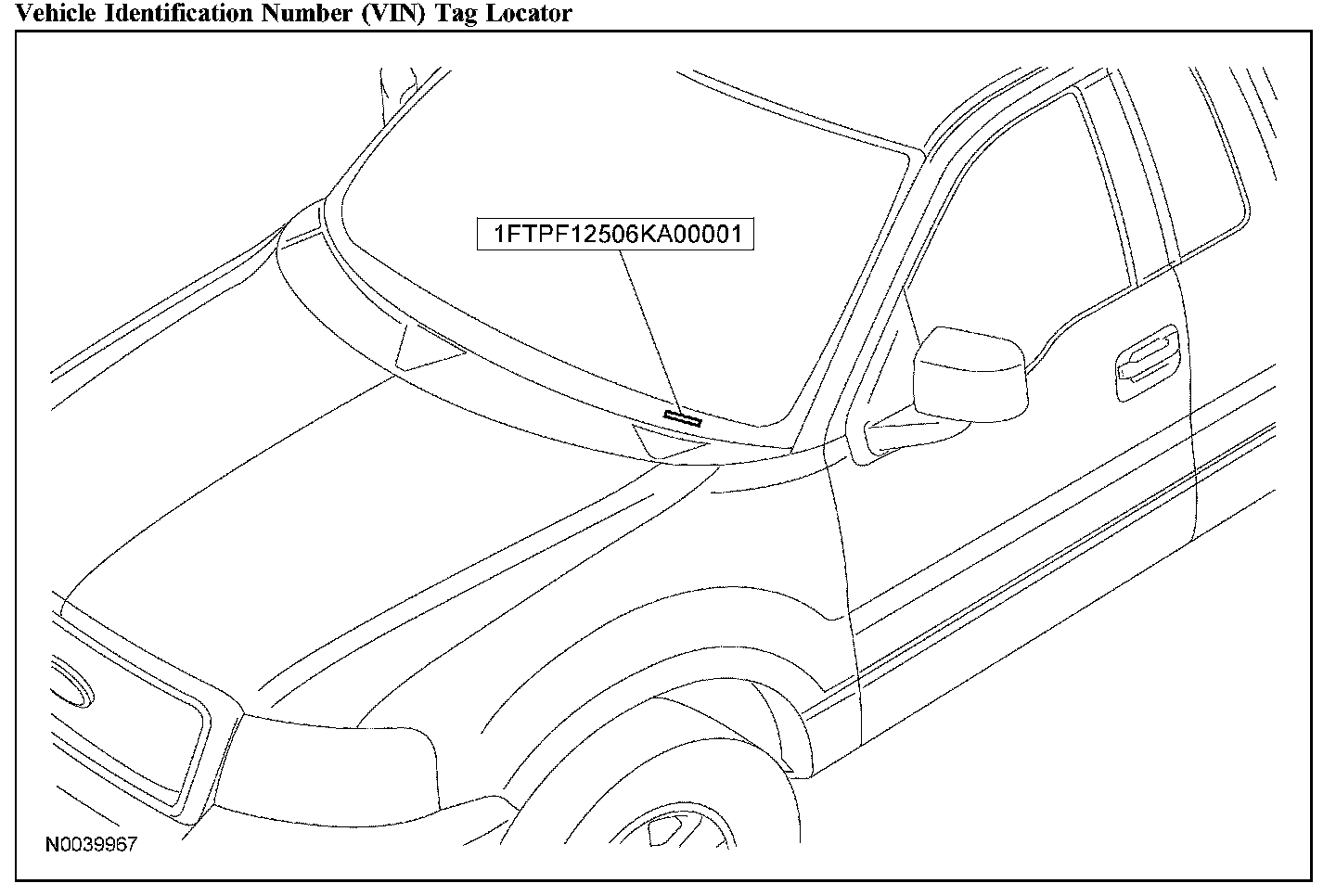The vehicle identification number (VIN) is a 17-digit combination of letters and numbers. The VIN is stamped on a metal tab riveted on the instrument panel, top upper left of the dash. The VIN is also found on the vehicle certification (VC) label.