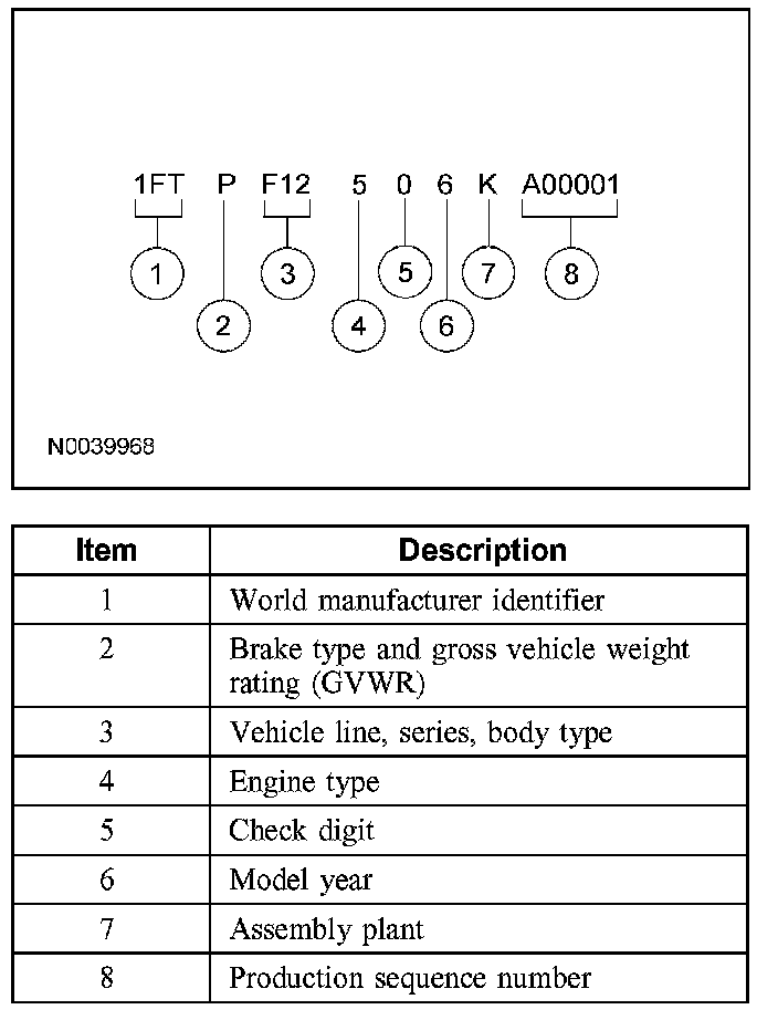 VIN positions 5 through 7 indicate the vehicle line, series and body type.
