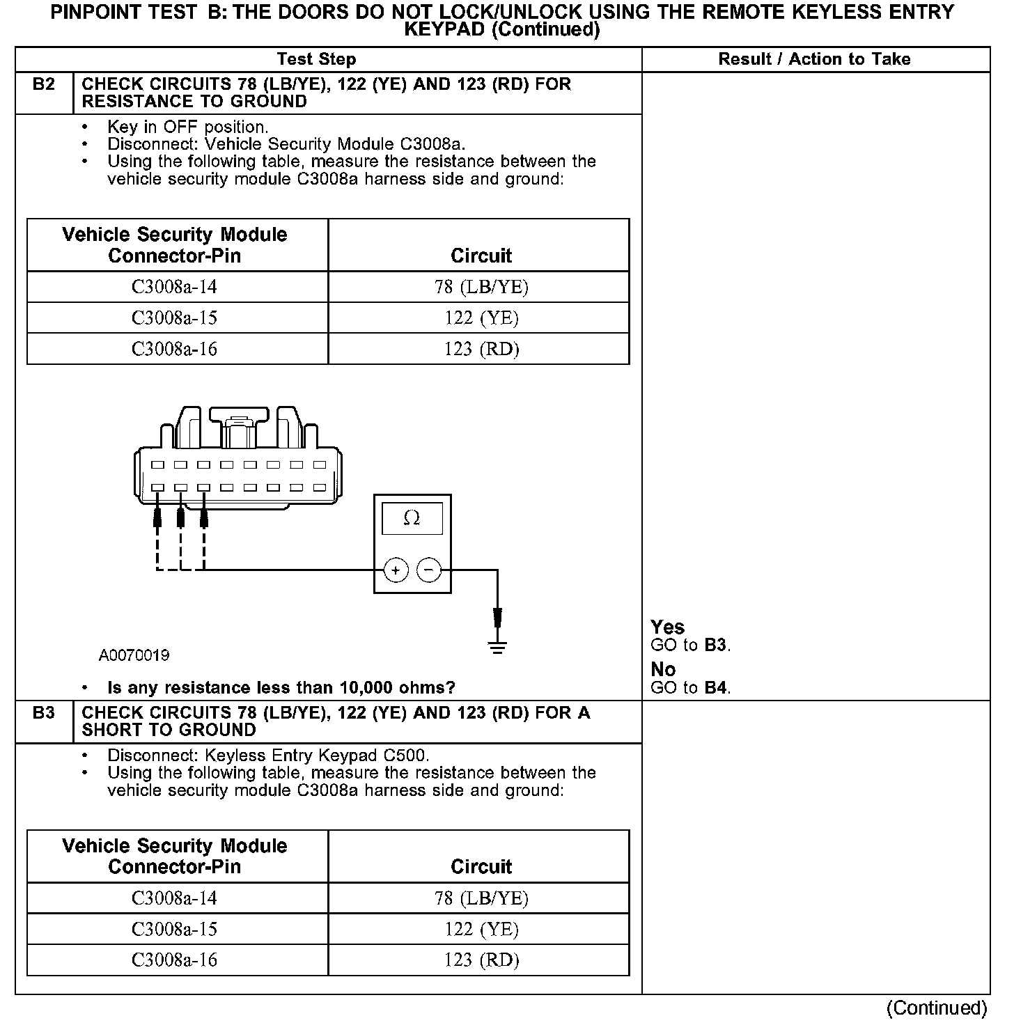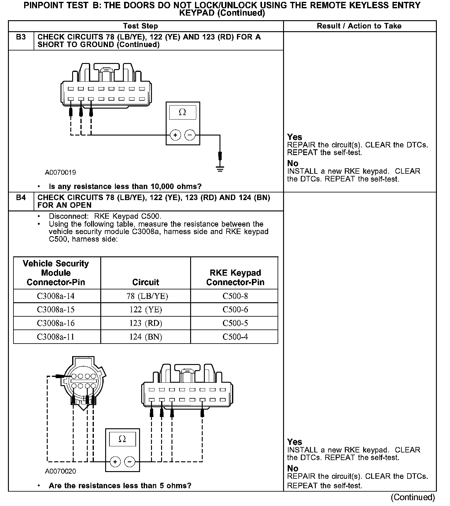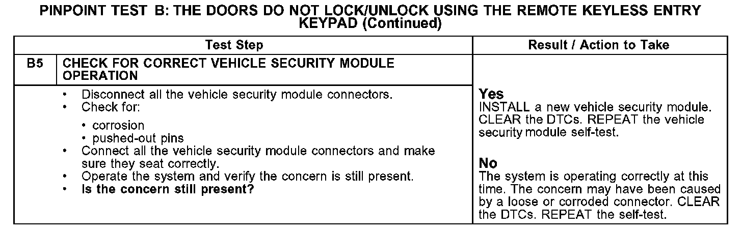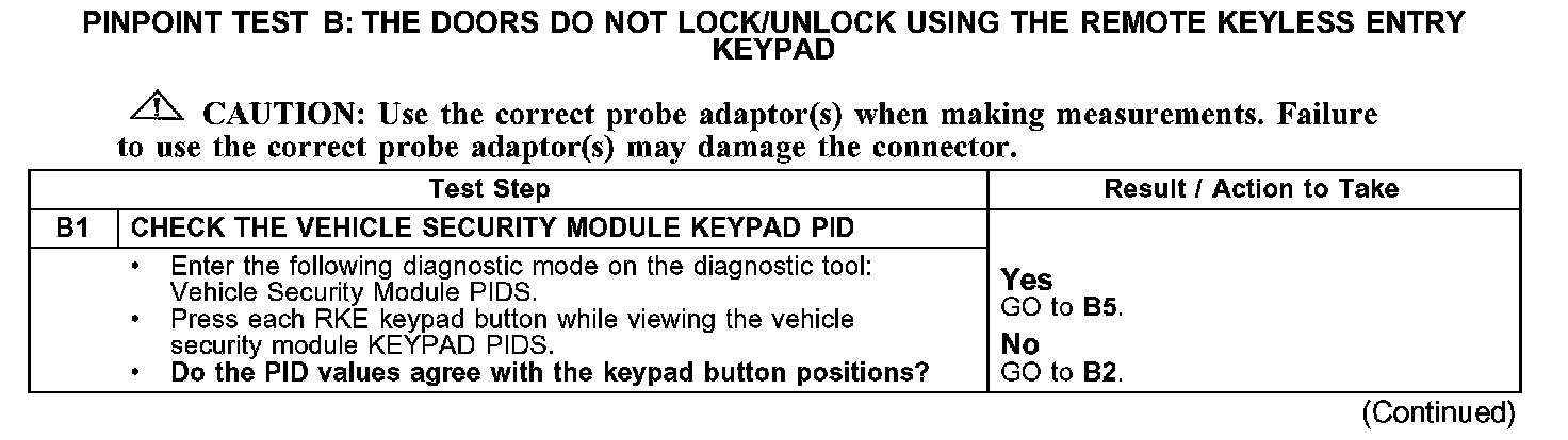 PINPOINT TEST B: THE DOORS DO NOT LOCK/UNLOCK USING THE REMOTE KEYLESS ENTRY KEYPADB1: