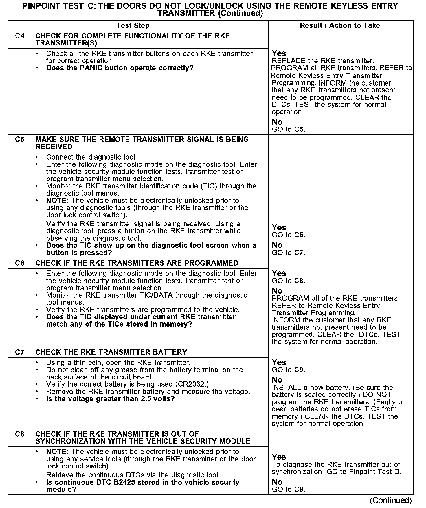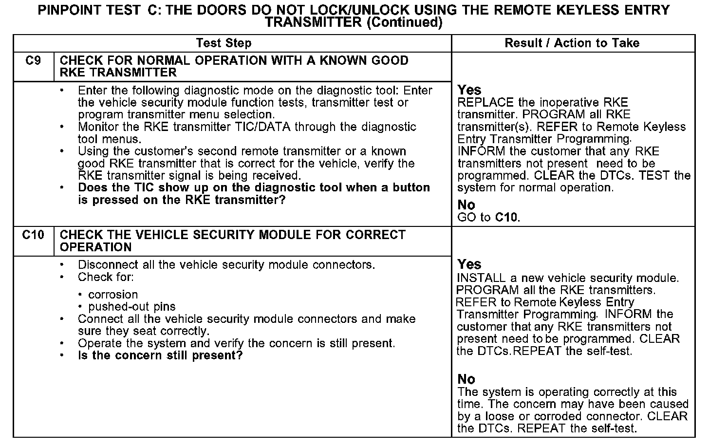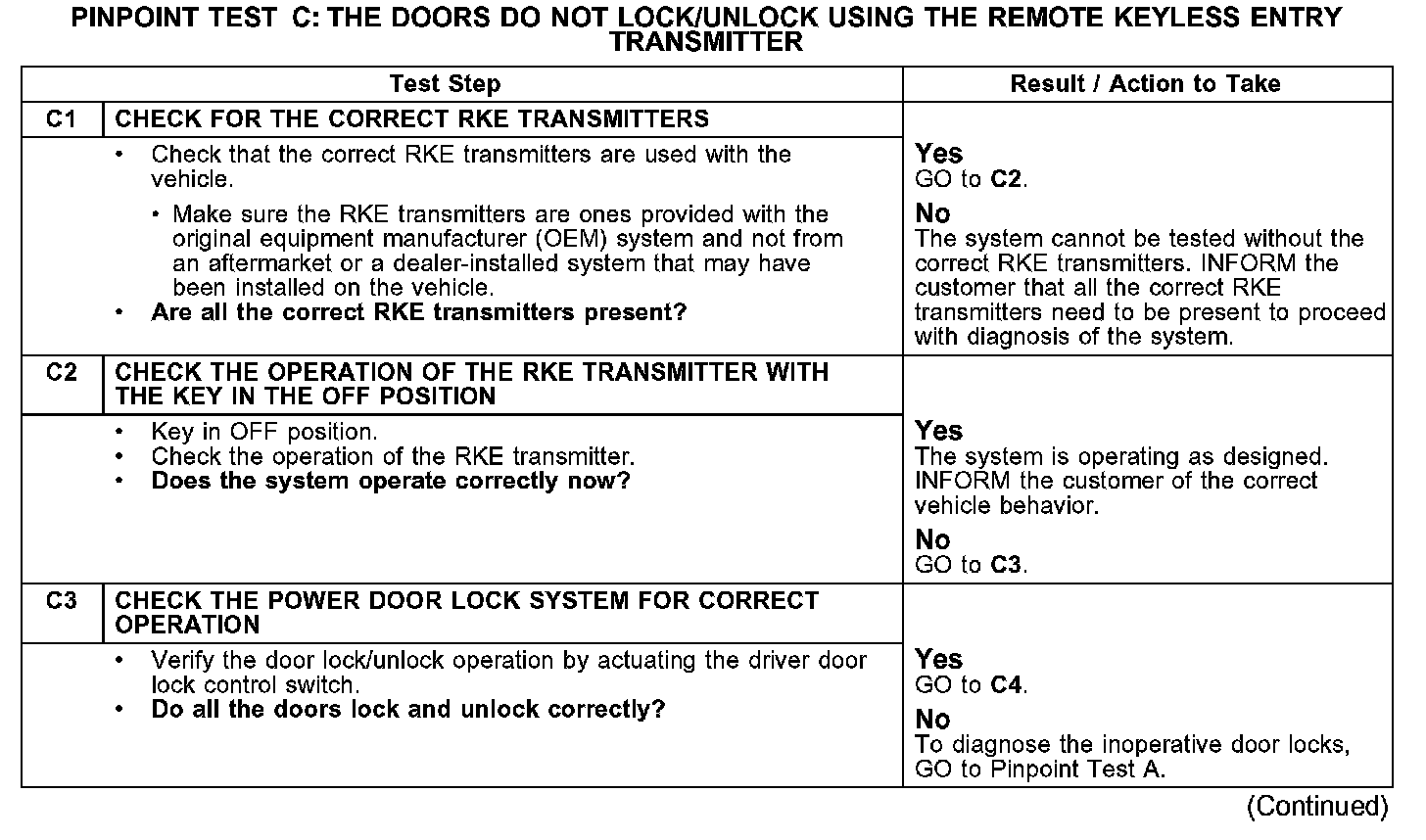 PINPOINT TEST C: THE DOORS DO NOT LOCK/UNLOCK USING THE REMOTE KEYLESS ENTRY TRANSMITTERC1-C3: