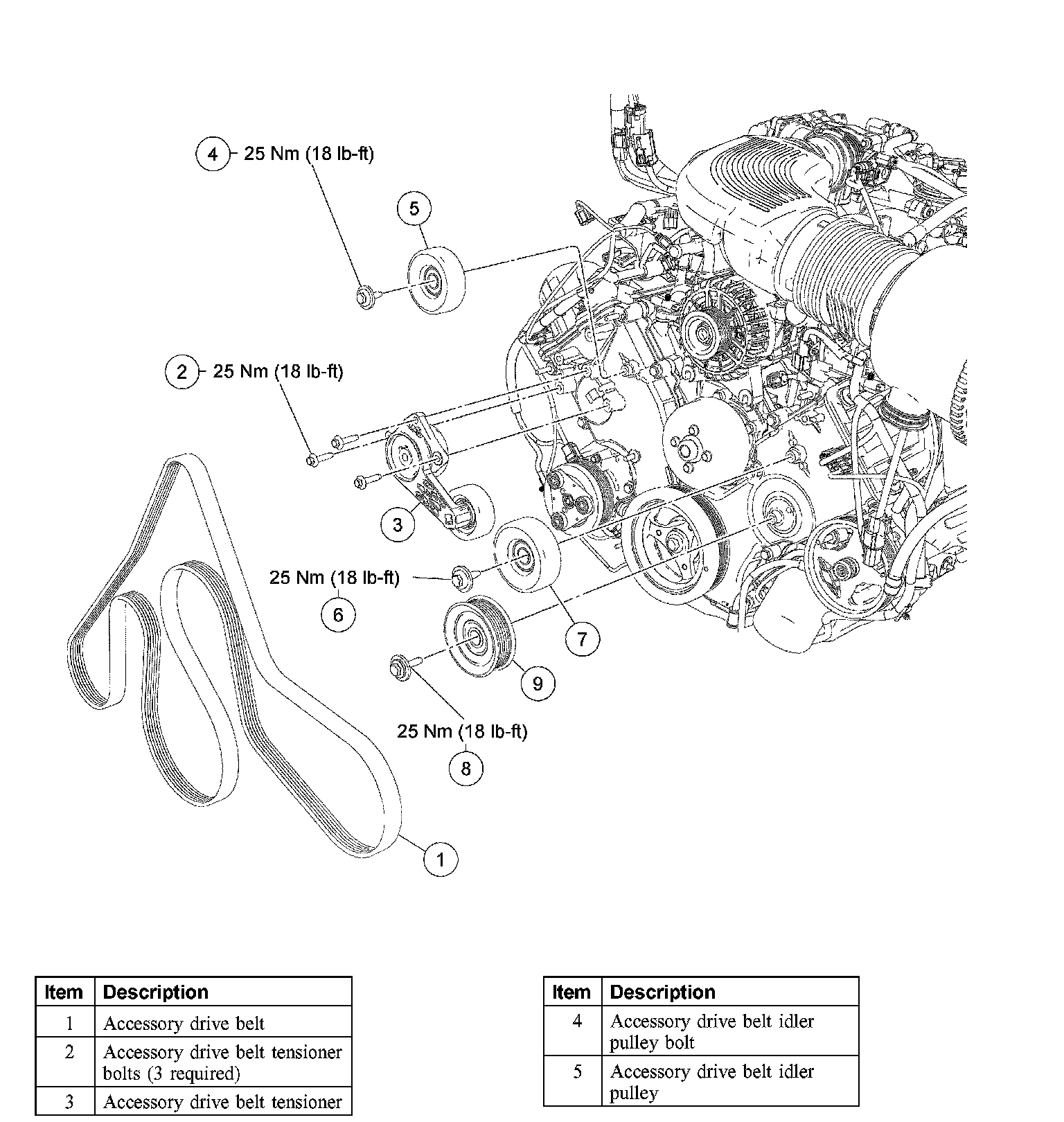 Front End Accessory Drive (FEAD) - Exploded View, 4.6L (2V) and 5.4L (3V)Front End Accessory Drive (FEAD) - Exploded View, 4.6L (2V) and 5.4L (3V) (Part 1):