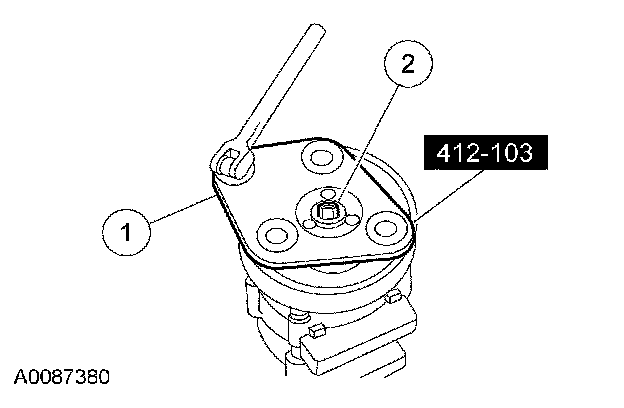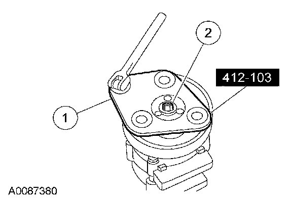 6. CAUTION: Do not use air tools. Damage to the A/C compressor pulley or A/C compressor may result.