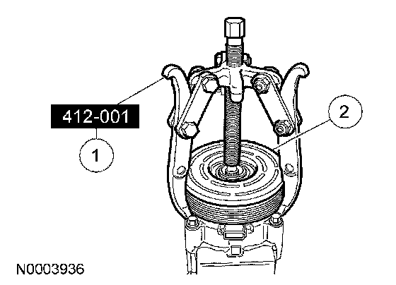 2. CAUTION: Do not use air tools. Damage to the A/C clutch field coil or A/C compressor may result.