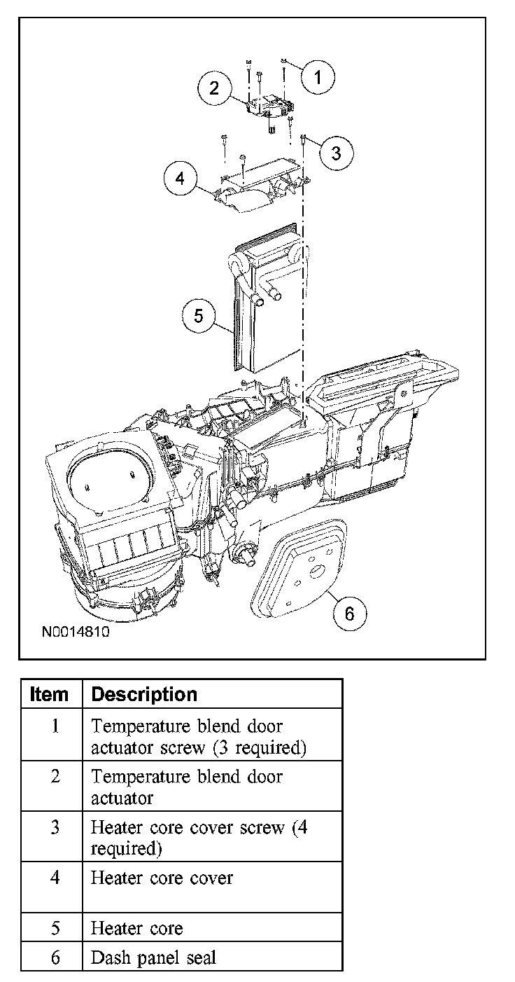 NOTE: If a heater core leak is suspected, the heater core must be leak tested before it is removed from the vehicle.