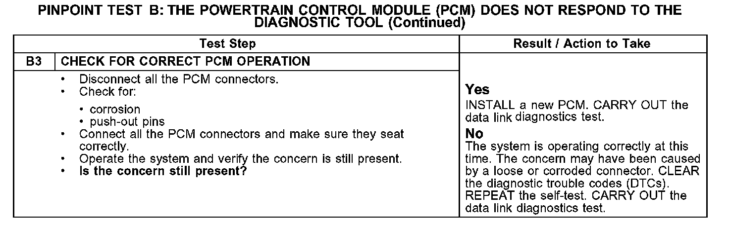 Test B: The Powertrain Control Module (PCM) Does Not Respond to the Diagnostic Tool