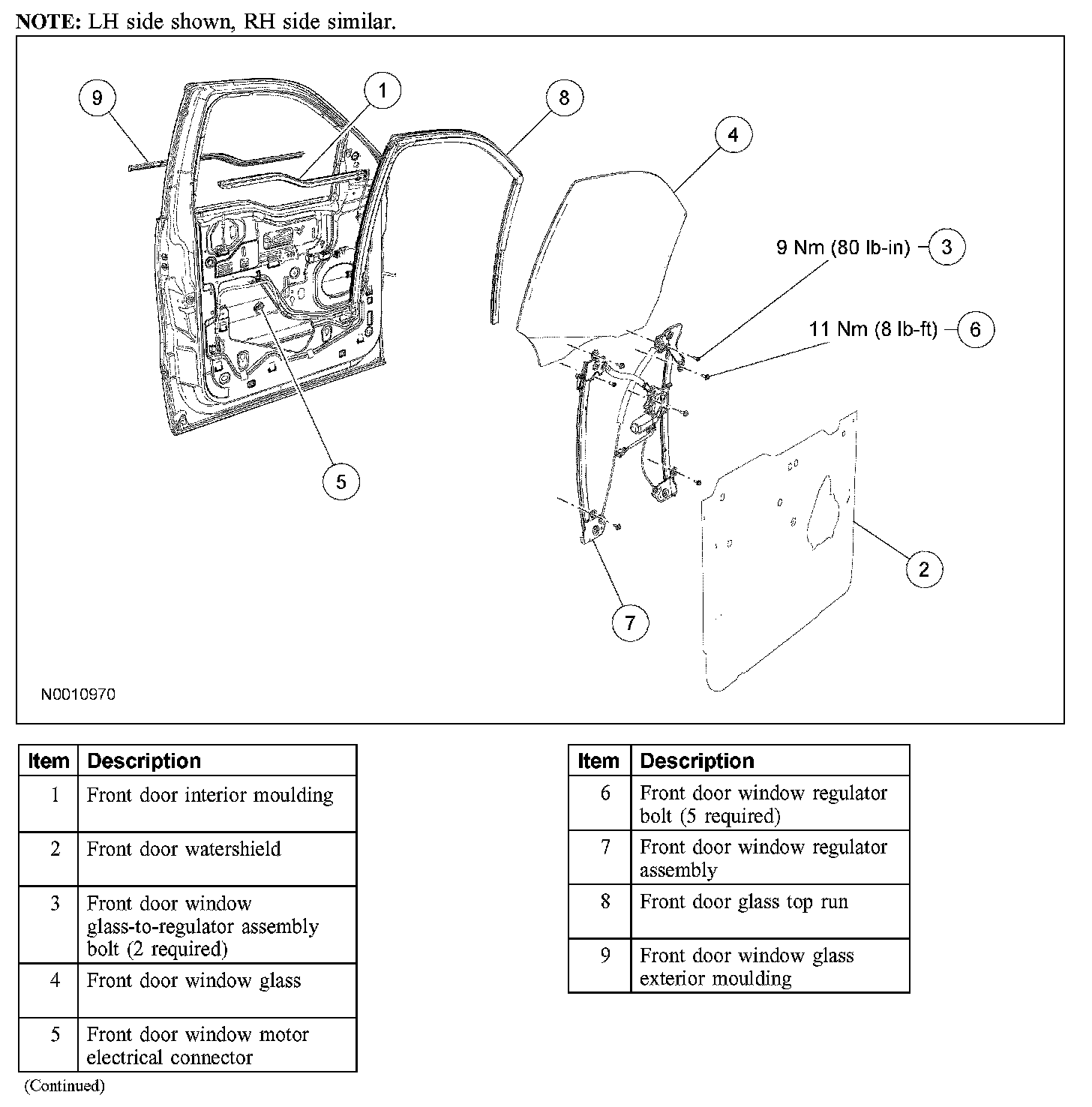 FRONT DOOR WINDOW REGULATOR AND MOTORRemoval and Installation