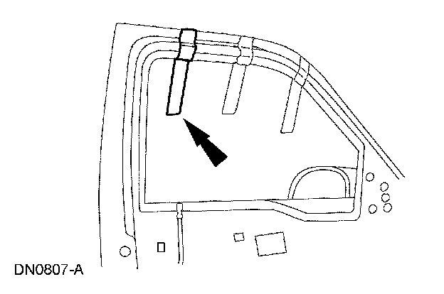 3. Secure the front door window glass in the full UPWARD position with tape.