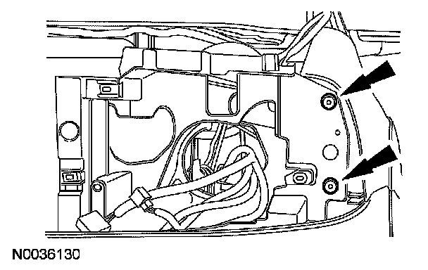 8. Remove the 2 front fender inner bolts.
