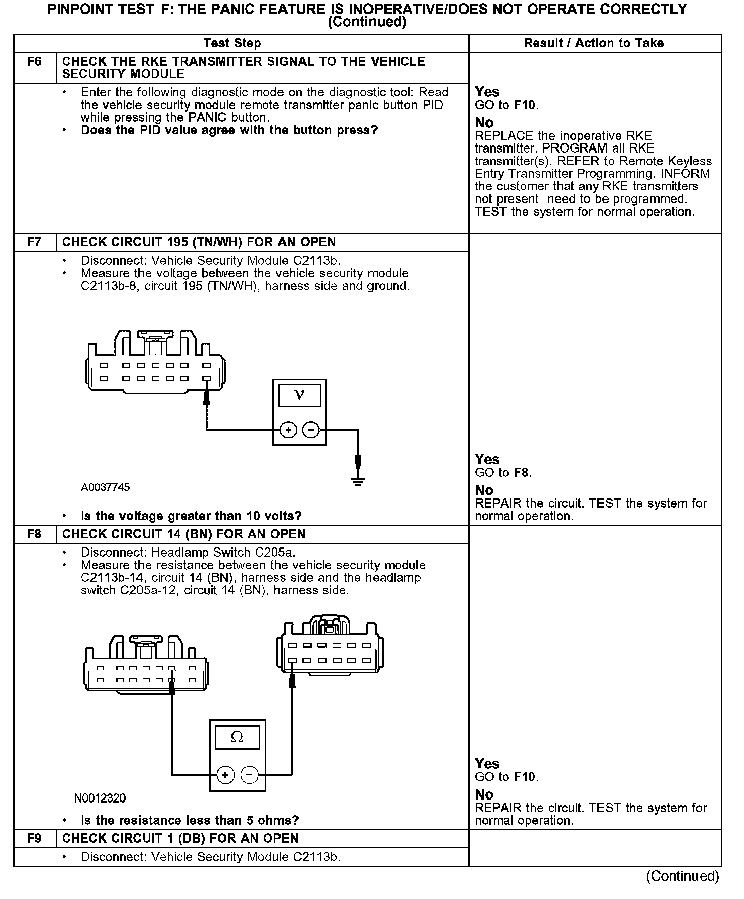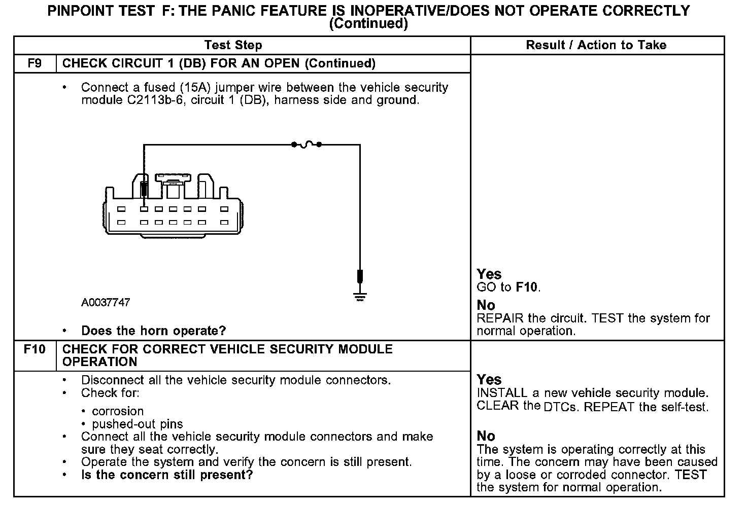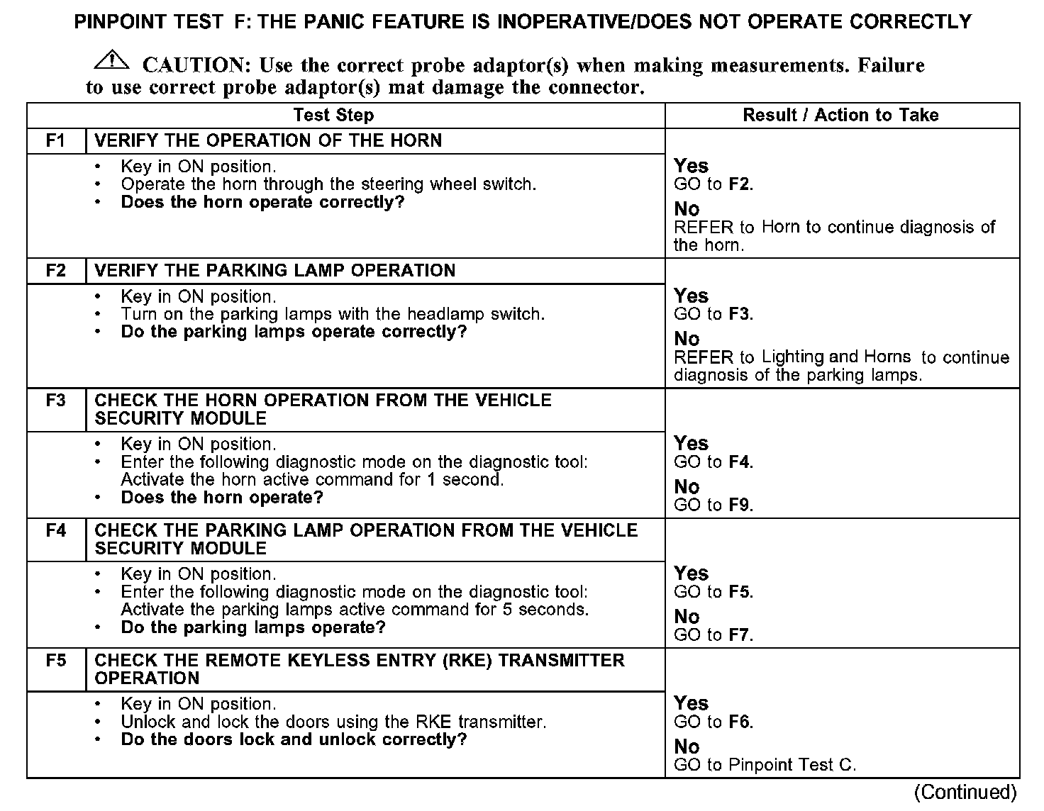 PINPOINT TEST F: THE PANIC FEATURE IS INOPERATIVE/DOES NOT OPERATE CORRECTLYF1-F5: