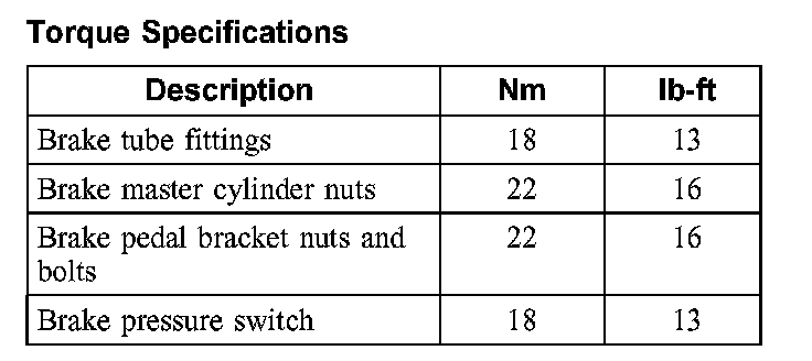 Torque Specifications:
