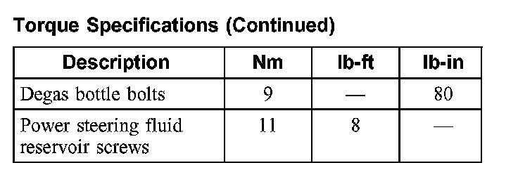 Torque Specifications: