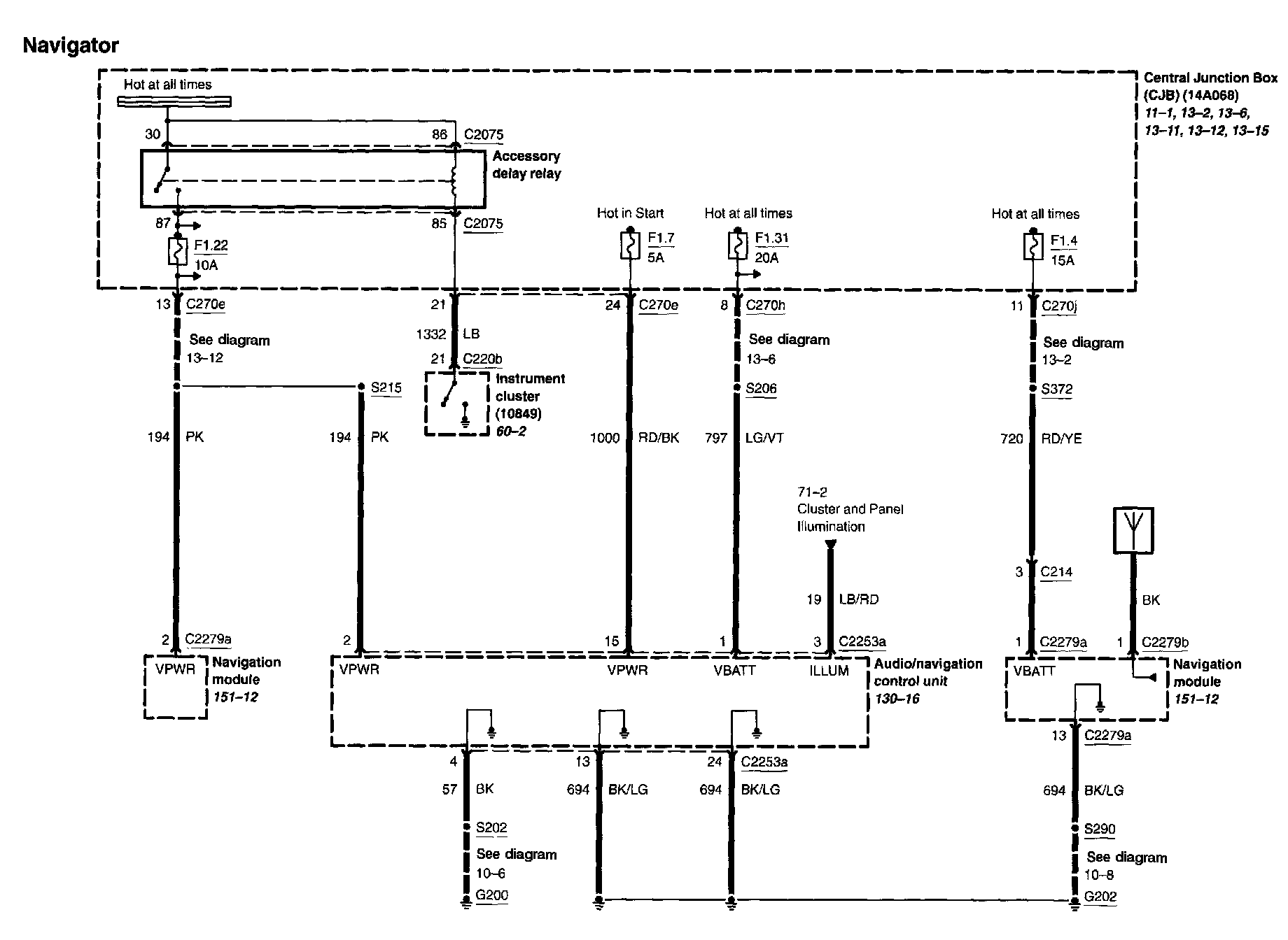 Locations: Location Views (reference numbers starting with 151-) referred to within these diagrams can be found at Component Location Views. Component Location Views