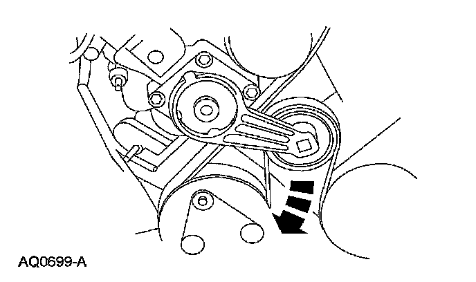 6. Rotate the tensioner clockwise and remove the accessory drive belt.