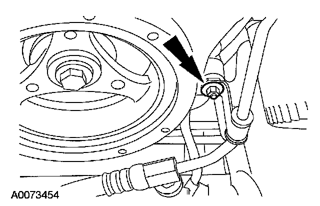 14. Remove the 3 bolts and the accessory drive belt tensioner.