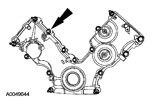 4. Tighten the engine front cover fasteners in 2 stages, in the sequence shown.