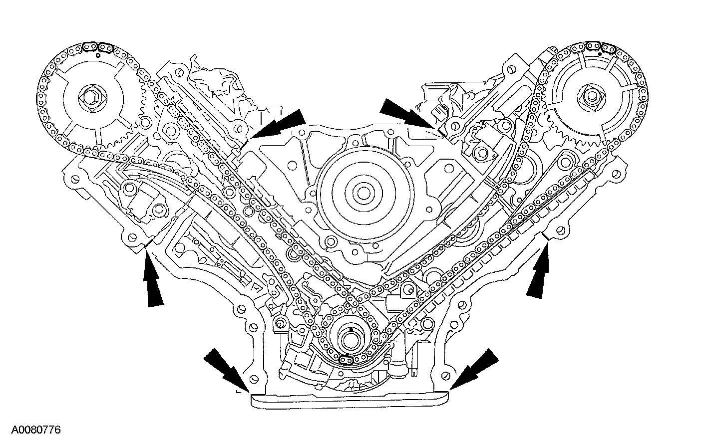 Apply a bead of silicone gasket and sealant along the cylinder head-to-cylinder block surface and the oil pan-to-cylinder block surface, at the locations shown.