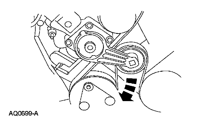 25. Rotate the tensioner clockwise and install the accessory drive belt.