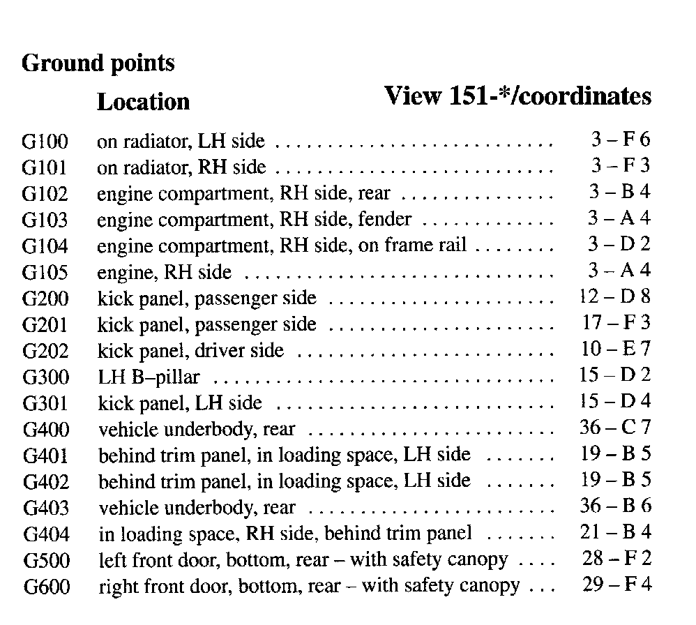 If a link on the Ground Location Index to a View is not provided, that means that the Ground and/or View in question does NOT apply to the vehicle model selected.