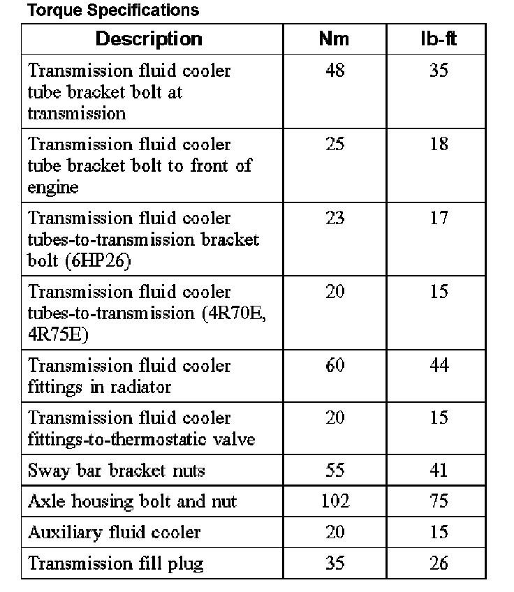 Torque Specifications: