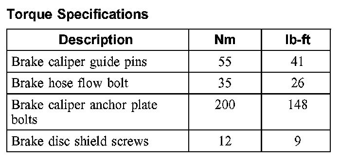 Torque Specifications, Front