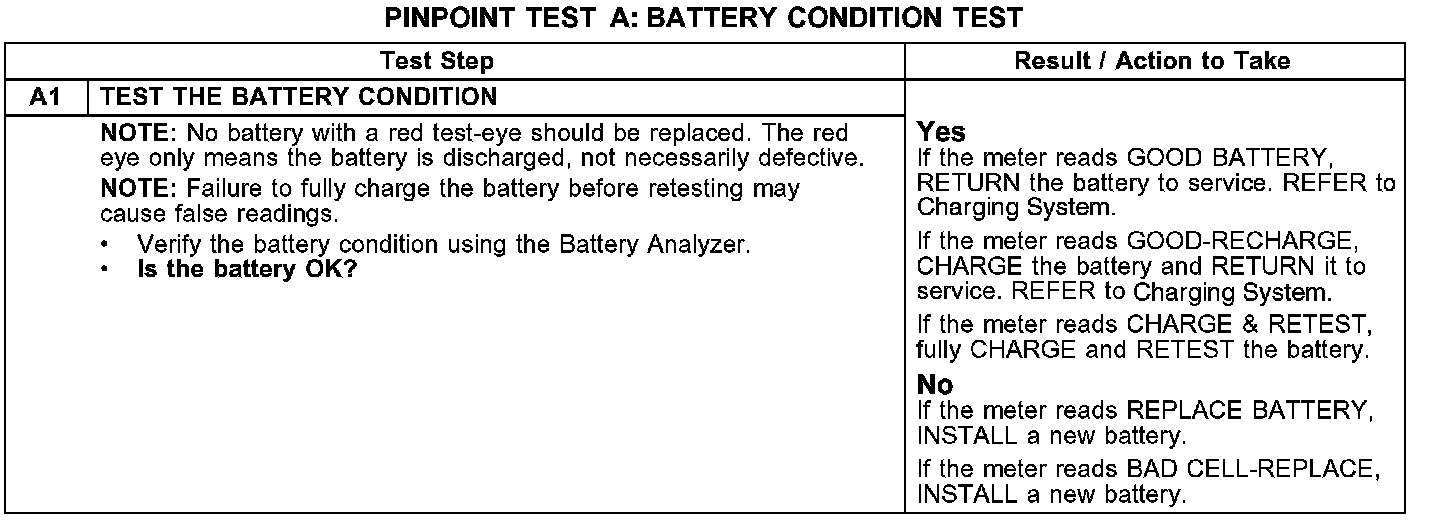 PINPOINT TEST A: BATTERY CONDITION TEST