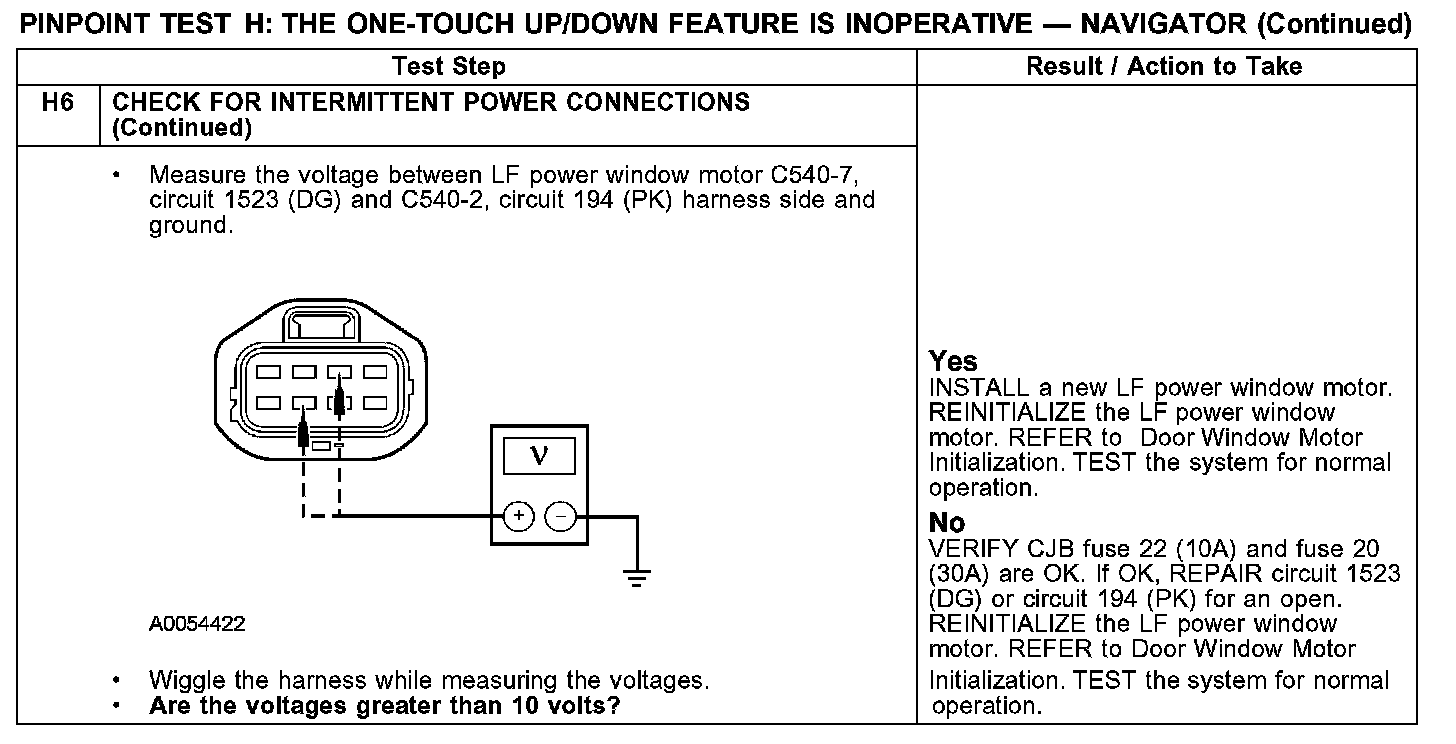PINPOINT TEST H: THE ONE-TOUCH UP/DOWN FEATURE IS INOPERATIVEH1-H3:
