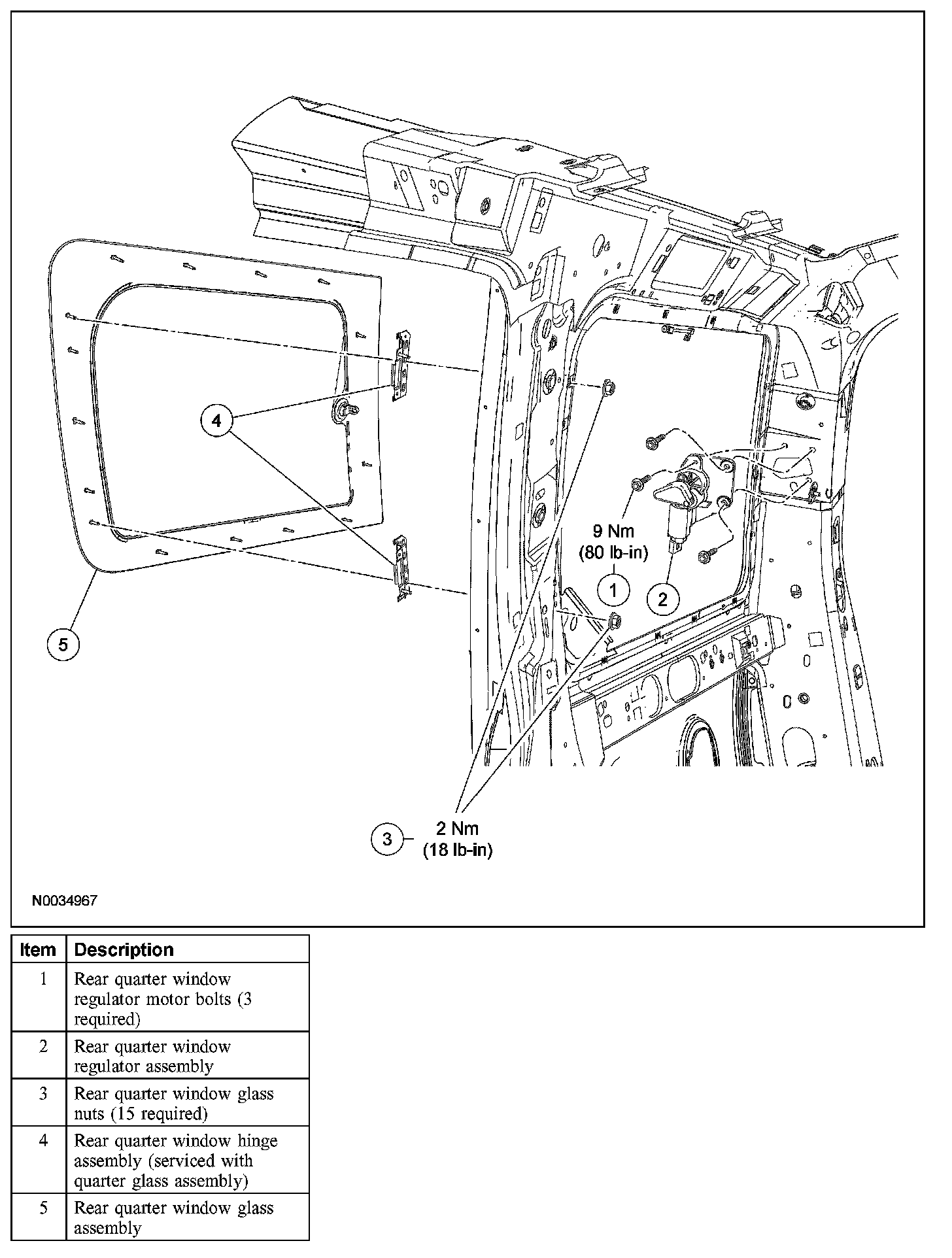 5. Install the rear quarter window regulator.