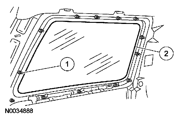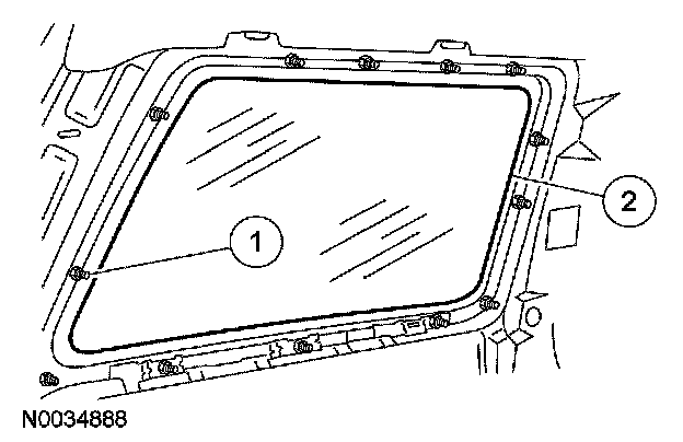 1. Apply 8 mm (0.32 in) Foam Butyl of equivalent meeting Ford specification WSB-M4GB45-A to the rear quarter window glass frame.