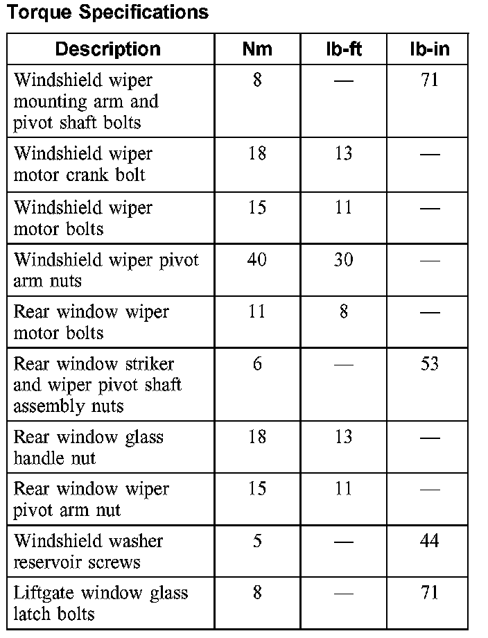 Torque Specifications