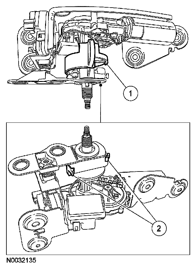 1 Position the wiper pivot arm onto the rear window wiper motor shaft.