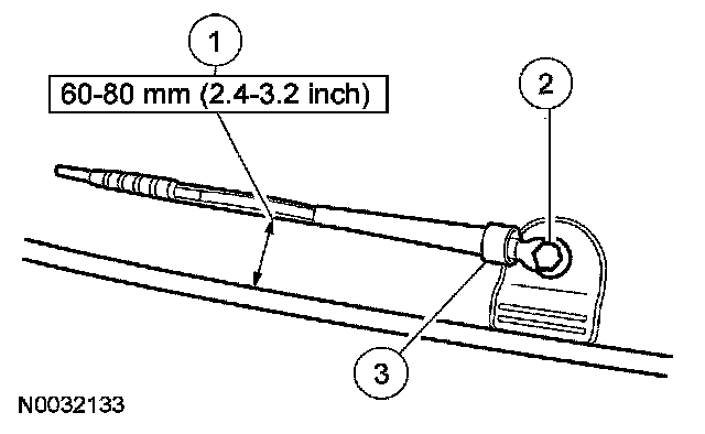 5. Open the liftgate. Install the rear window wiper striker and wiper pivot arm mounting assembly nuts. Tighten to 6 Nm (53 lb-in).