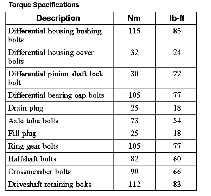 Torque Specifications: