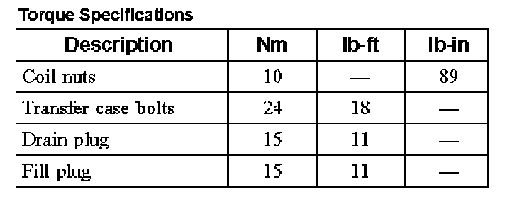 Torque Specifications: