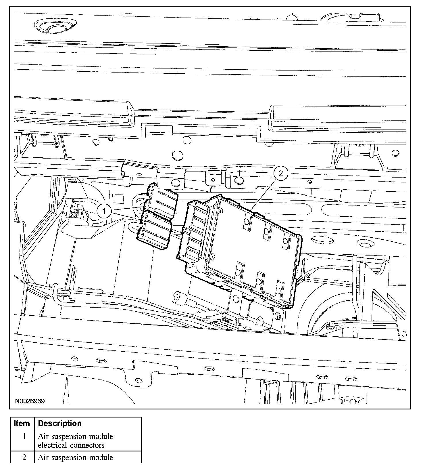 4. Disconnect the air suspension module electrical connectors.