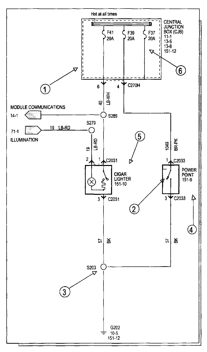 Each set of diagrams normally starts with the component that powers the circuit such as a fuse or the ignition switch. Current flow is shown from the power source at the top of the diagram to ground at the bottom of the diagram. A full representation of the power supply of a fuse or the power distribution from a fuse to various components is given in Power and Distribution Diagrams. Full representation of the ground connections are shown in Power and Distribution Diagrams.